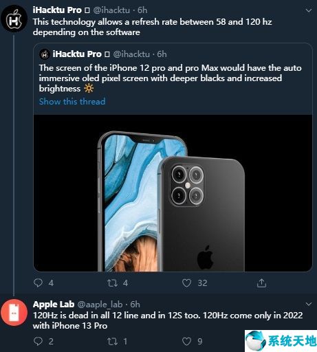 7月30日消息 据外媒wccftech报道,知名爆料者苹果实验室 @aaple_lab 今日回复网友消息称,今年的苹果 iPhone 12 系列以及明年的 iPhone 12s 系列均不会采用 120Hz 刷新率屏幕,直到 2022 年的 iPhone 13 Pro 才有可能支持 120Hz。