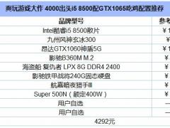 4000元i5-8500配GTX1065游戏配置推荐 i5-8500配GTX1060 5G六核独显游戏配置方案,可以畅玩各类3D游戏大作,包括畅玩《绝地求生》。当然,由于吃鸡游戏在高特效或者2K画质下,对内存要求也很高,有这方面需求的朋友,建议再查看 -