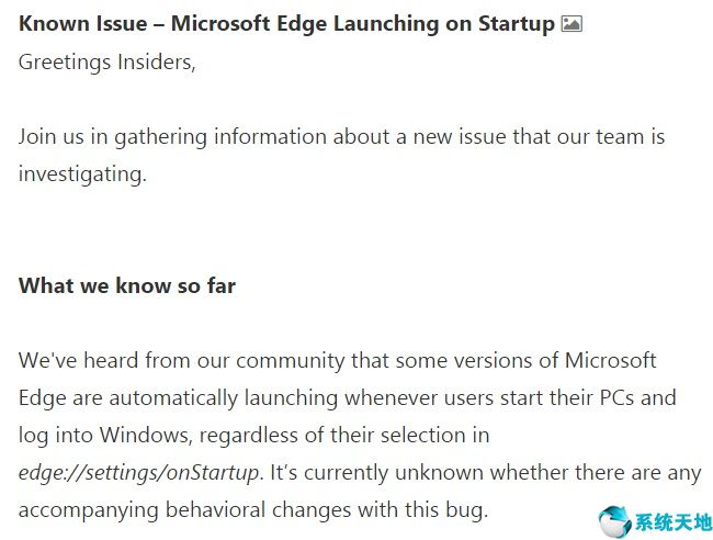 不过部分用户最近反馈的一个情况却会让人误以为微软正在另辟蹊径让他们将 Microsoft Edge 作为默认浏览器。根据用户的反馈,无论在 edge://settings/onStartup 中进行了哪种设置,无论何时启动 PC 并登录 Windows,部分 Microsoft Edge 都会随系统启动而启动。也就是说,开机并进入桌面后,Microsoft Edge 便会自动启动。