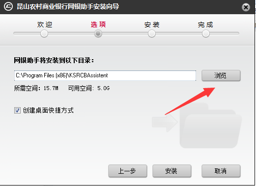 3、在安装界面中点击“浏览”,并勾选创建桌面快捷方式的选项。