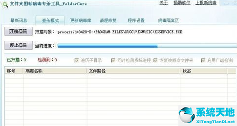 选择完毕后,即可系统中的全盘进行文件夹图标病毒的扫描。