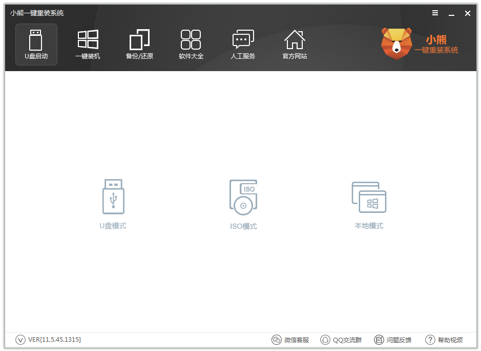 小熊一键重装系统官方版是一款专业便捷的电脑系统一键重装工具,使用非常简单,即使没有基础也能快速使用,它集U盘启动、一键装机、一键备份/还原等功能与一体,设计小巧,操作简单,支持XP系统重装,Win7系统安装或Win8、Win10系统等。
