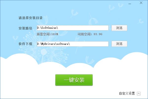 2、进入“一键安装”界面,首先打开【自定义设置】选择好自己想要的安装路径后,再点击【一键安装】;