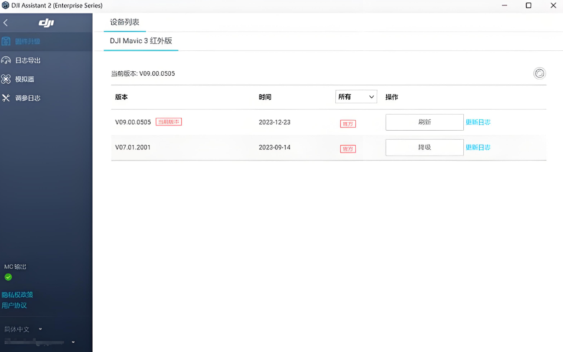 DJI Assistant 2 支持对大疆无人机及相关设备进行固件升级,确保设备始终运行最新版本,以获得最优性能和功能体验。