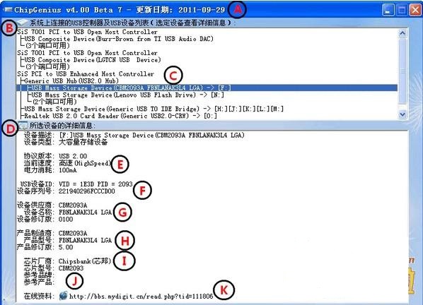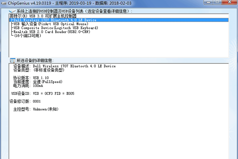 2、芯片精灵可以自动列出所有接口上的usb设备,点击对应的设备就可以了解到相应的信息。