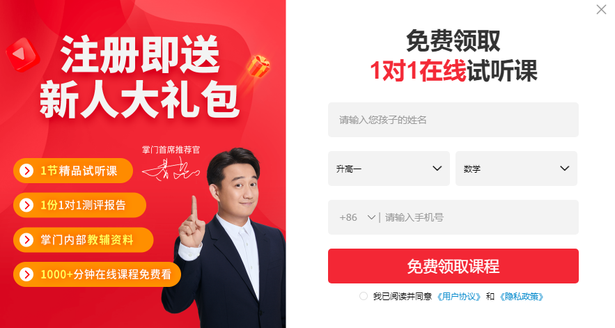 【首节0元试听】注册预约即可0元体验在线1对1辅导课程。