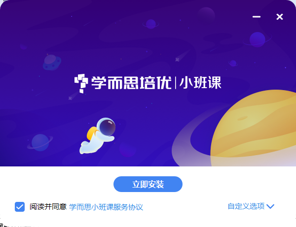 1.在系统天地下载学而思小班课PC版的安装包,双击exe程序,进入安装界面,单击自定义选项
