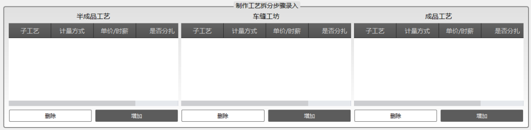 云上纺支持创建半成品工艺,车缝工坊,成品工艺的子工艺。