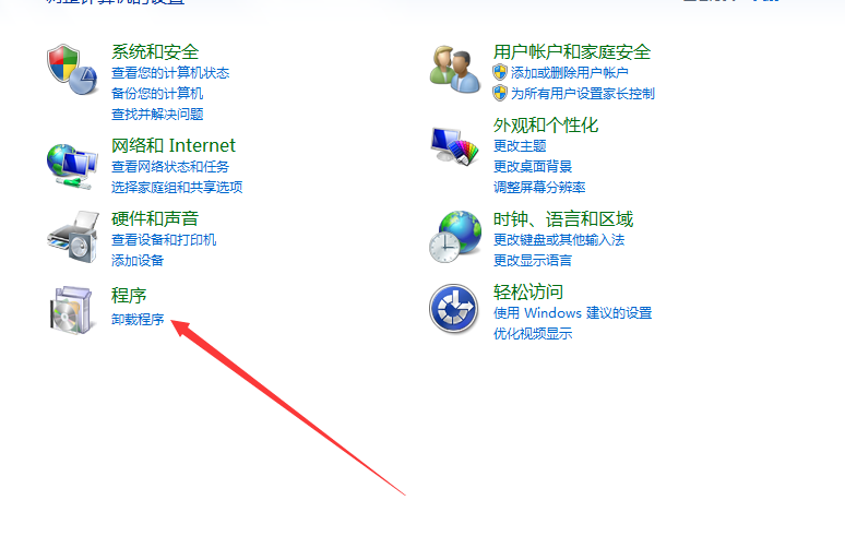 1、打开控制面板点击卸载程序