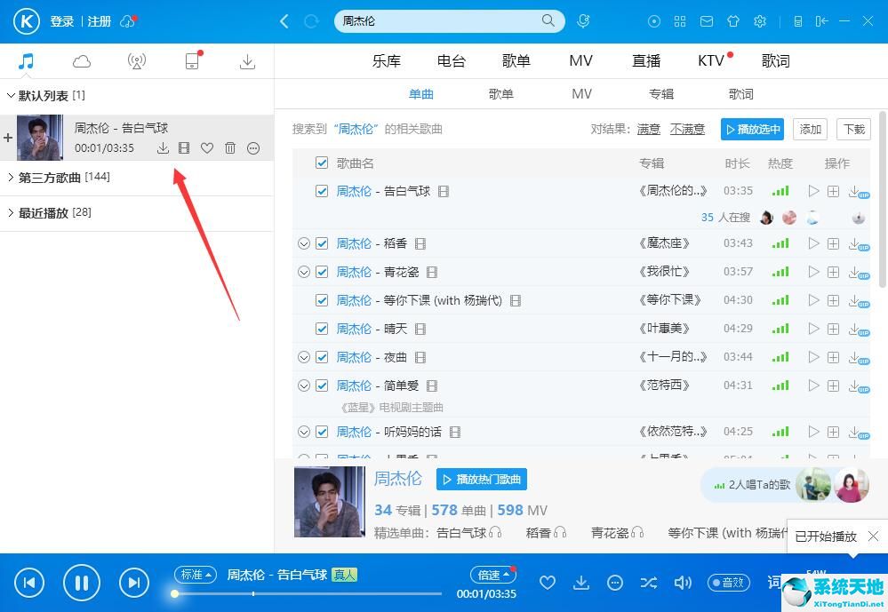 3、同时这首歌曲也会自动添加进播放列表中,用户以后能够更方便的找到这首歌曲。