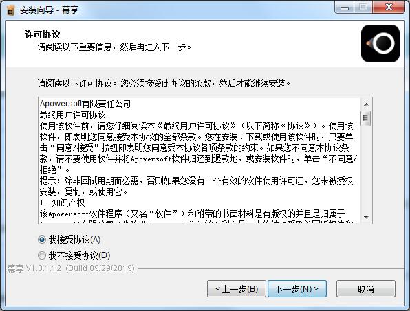 1.在系统天地下载幕享PC版安装包,双击exe程序,进入安装向导,单击下一步