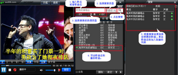 1、wo99伴奏网盒10万首高品质立体声原版伴奏,均含歌词。