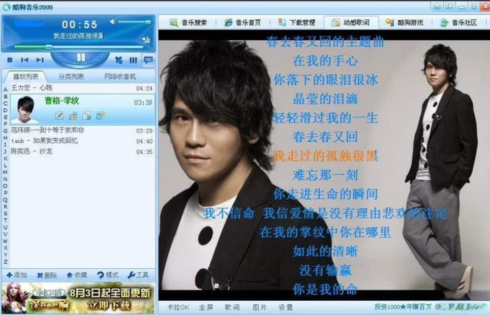 卡拉OK歌词显示:酷狗2009支持多种歌词显示模式,实现边听边唱的互动体验,增强音乐娱乐性。
