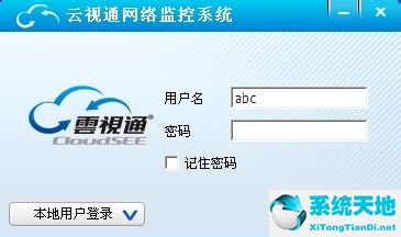 2、登陆云视通网络监控系统,默认用户名abc,密码123,如下图所示: