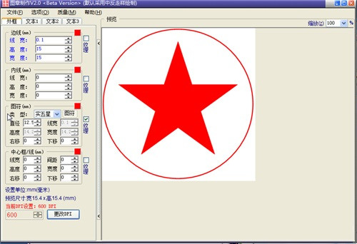 图符选择[五星]时,系统将根据圆心位置和半径自动生成正五角星;若选择自定义模式,则可加载用户自定义图形(如邮储、党徽、国徽等)作为图符。电子印章制作软件(sedwen)中支持调整图符的高度、宽度、水平偏移和垂直偏移。