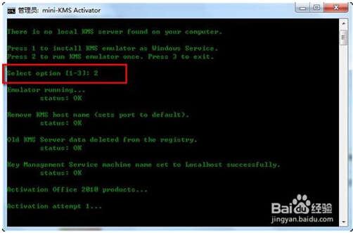 1、打开“office2010正式版激活工具”后点击第二个选项,activate office 2010,这时会弹出一个黑窗