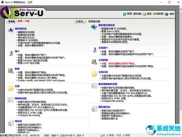 Serv-U FTP Server是一种被广泛运用的FTP服务器端软件,可以设定多个FTP服务器、限制登录用户的权限、登录主目录及空间大小等,功用十分齐备.具有十分齐备的安全特性,支持SSl FTP传输,支持在多个Serv-U和FTP客户端经过SSL加密连接维护您的数据安全等.做个人的 FTP 服务器是很好的挑选,你现在就可以树立你自己 的FTP服务器了.它还为用户的系统安全供给了适当全面的维护.例如:您可以为您的 FTP 设置密码、设置各种用户级的访问许可等等!