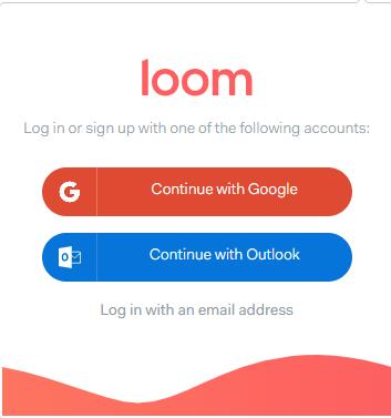 安装完成之后我们可以在浏览器的右上角看到Loom的图标,点击Loom的图标则会显示我们要进行登录,你可以选择Gmail或者Outlook邮箱进行登录,当然也可以选择底部的Log in with an email进入邮箱登录页面。如果你真的没有账户的话,请在登录页面选择Sign Up进行账户的注册。