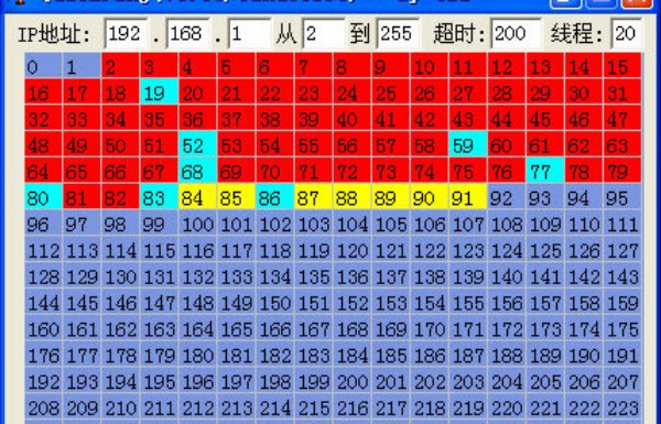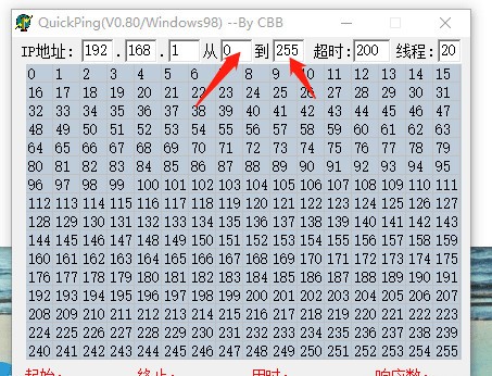 2.选择要ping的IP段 直接点开始,速度非常快,几秒后得到下图结果