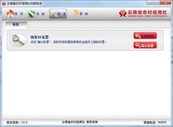 云南农信网银助手可能会修改您的IE设置,点击"立即检测"可查询IE设置是否被安全组件修改。