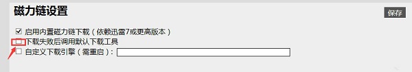 出现下载失败的情况的话,点开迅雷种子搜索器TSearch设置,把【下载失败后调用默认下载工具】点上√即可。