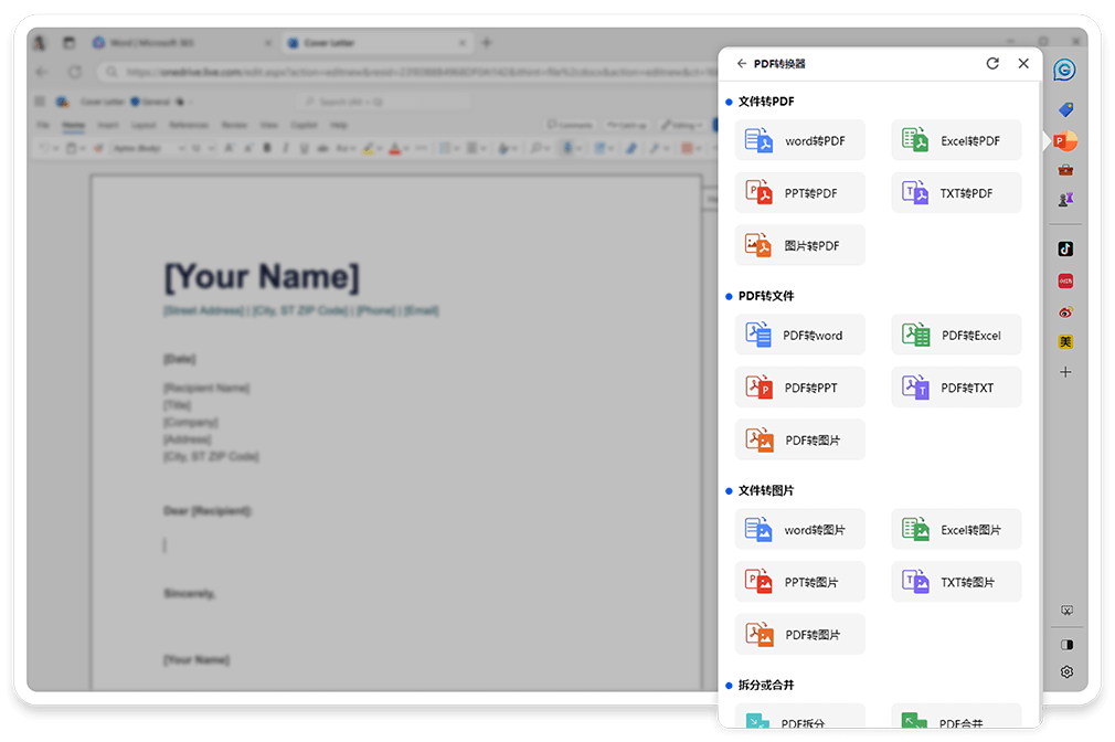 GPT浏览器包含多个内置工具,如文档编辑器、GPT辅助撰写文稿、免费文档格式转换工具,一目了然的垂直标签,都可以帮助你保持高效的工作。