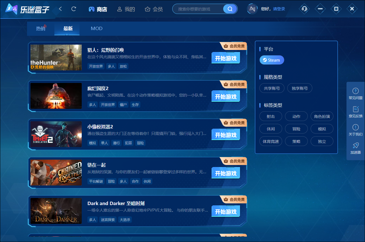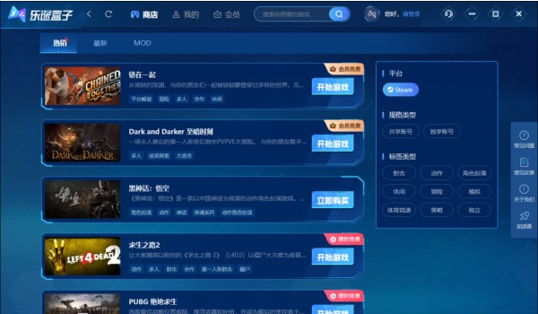 乐速盒子聚合了众多热门的3A级Steam游戏,用户无需在多个平台间切换,即可轻松找到并享受自己喜爱的游戏。它提供了一站式服务体验,大大简化了游戏寻找、购买和游玩的流程。