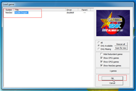 2.选中“Double Dragon”,之后点击右下角“OK”进入双截龙格斗游戏。