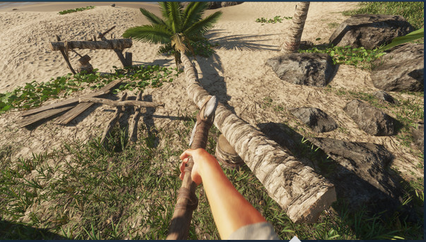 木棍:对着一棵倒下的椰子树(鼠标移到上面显示Trunk)