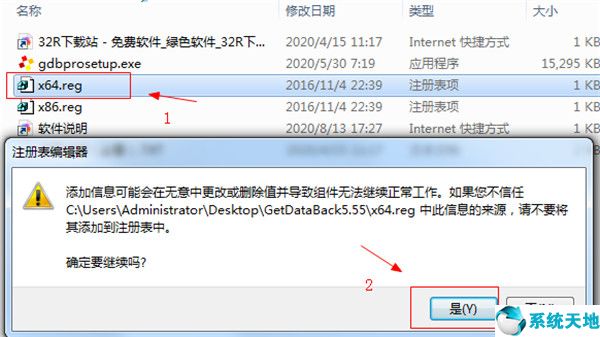 如下图小编以64位为例,在弹出注册表后点击“是”按钮即可