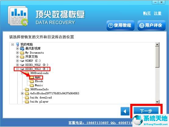 二,点击进入误删除文件,选中要恢复的文件所在的硬盘以及文件夹,点击下一步