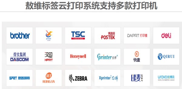 3、支持多种打印机:敖维标签云打印系统兼容热敏、热转印、激光、喷墨、针式等多种打印机,涵盖斑马Zebra、立像Argox、台半TSC、得力Deli、佳博Gprinter等品牌。