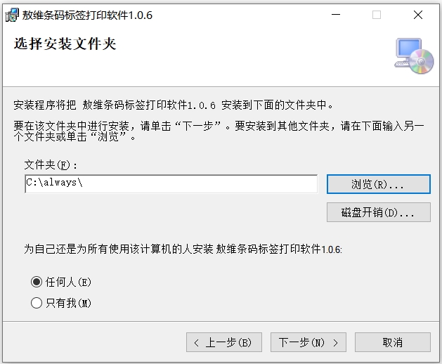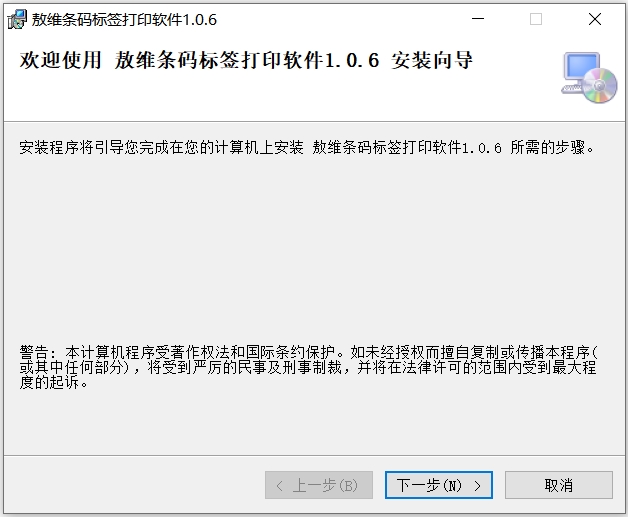 1、下载敖维标签云打印系统软件安装包,双击打开安装导向,点击下一步。