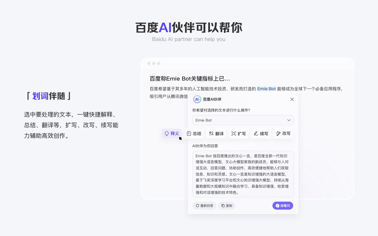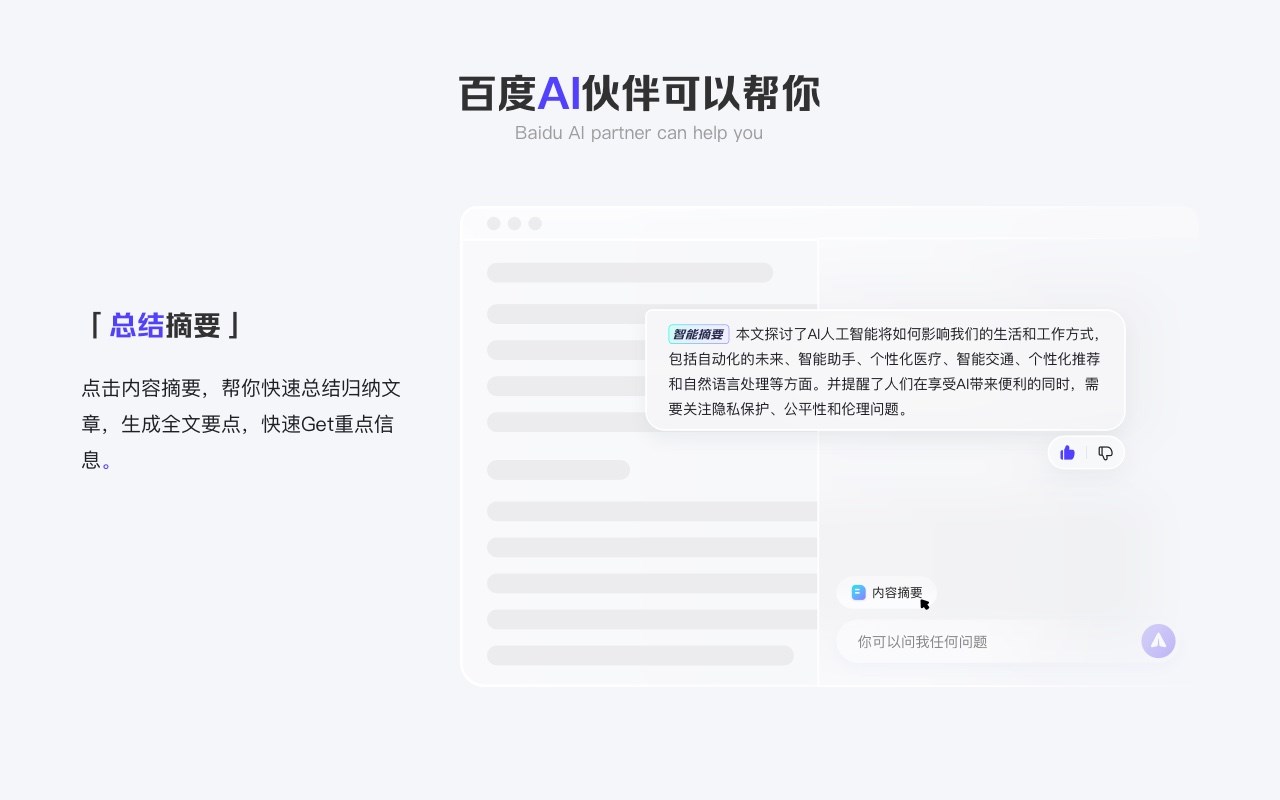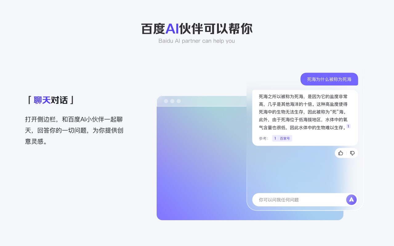 2、百度AI助手能够理解用户的自然语言提问,并为用户快速的提供精准的答案。