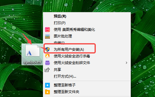安装方法二:下载字体文件后,直接右键点击字体文件,选择“为所有用户安装”即可完成安装。
