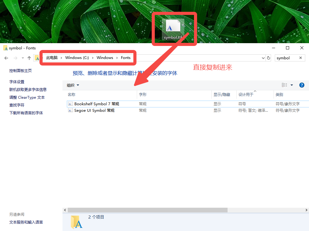 安装方法四:将字体文件直接粘贴至C:WINDOWSFonts目录