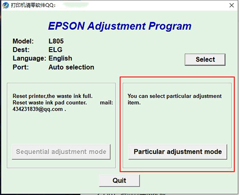 1、爱普生L805打印机清零软件具备自动识别打印机型号的功能