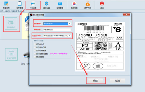 注:如果选择非顺丰的直连热敏模板,有的需要填写商家ID和接口密码,请联系物流公司网点主管提供