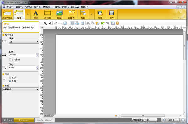 1、模式化操作界面:P-touch Editor 通过Snap、Express和Professional三种模式,为不同熟练度的用户提供最适合的操作环境。
