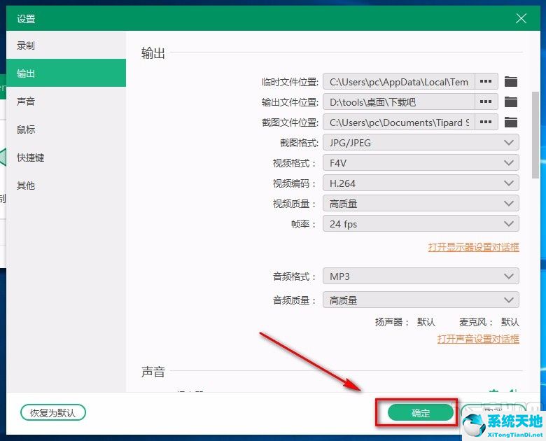 5.完成以上所有步骤后,我们在窗口底部找到“确定”按钮,点击该按钮就可以成功设置好视频的输出格式。