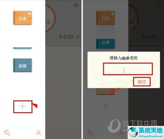 2、点击下方的【+】然后点击下方的编辑框输入账本名称,最后点击【确定】即可。(如下图)