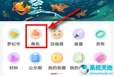 1、首先,点击打开梦幻西游藏宝阁APP,在首页的功能界面中选择“角色”的功能选项。