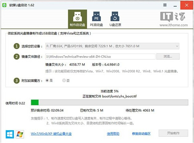 按照图中的提示,只需要选择好U盘(一定要看仔细,别选错!)和镜像后,点击“开始制作”即可。