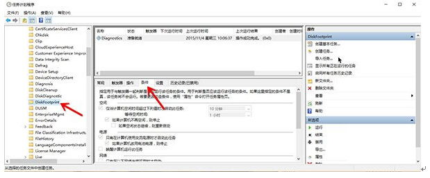 第二步、在计划任务程序中左侧导航栏内依次进入>Microsoft> Windows> Diskfootprint,在右侧就会看到名为Diagnostics的任务了。