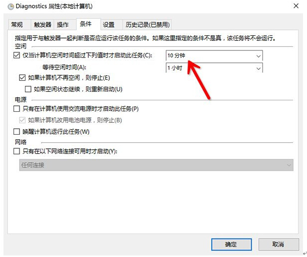 Diskfootprint条件指定用于与触发器一起判断是否用运行该任务的条件,如果指定的条件不是真,那么电脑在闲置一定时间后也不会弹出disksnapshot.exe窗口,用户也可以按照教程的方法来关闭disksnapshot.exe自动运行并弹出提示窗口问题。