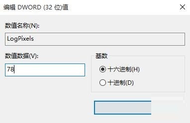 4、同样找到并打开LogPixels项,根据自身需要进行更改(注意十六进制与十进制的转换(括号内为十进制):78(120),7D(125),96(150),C8(200)),如下图所示。