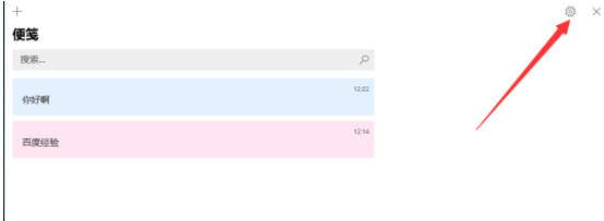 2、进入【便笺】界面之后再点击右上角【设置】,如下图所示。