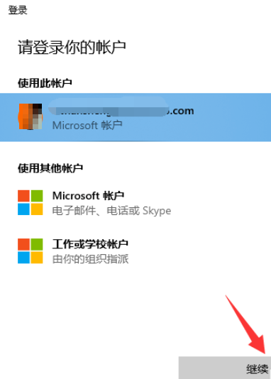 3、然后点击【登录】,登录Windows账号,点击【继续】,如下图所示。
