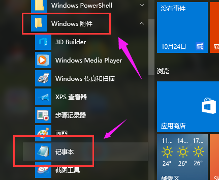 1、首先在开始菜单中选择【附件】,如下图所示。