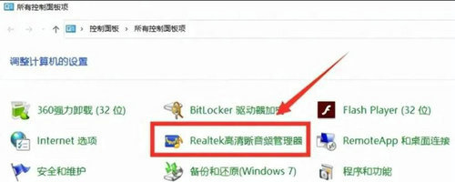 第二步:在打开的控制面窗口中,将右上角的查看方式修改为大图标,然后找到【Realtek高清晰声频管理器】选项,如下图所示。